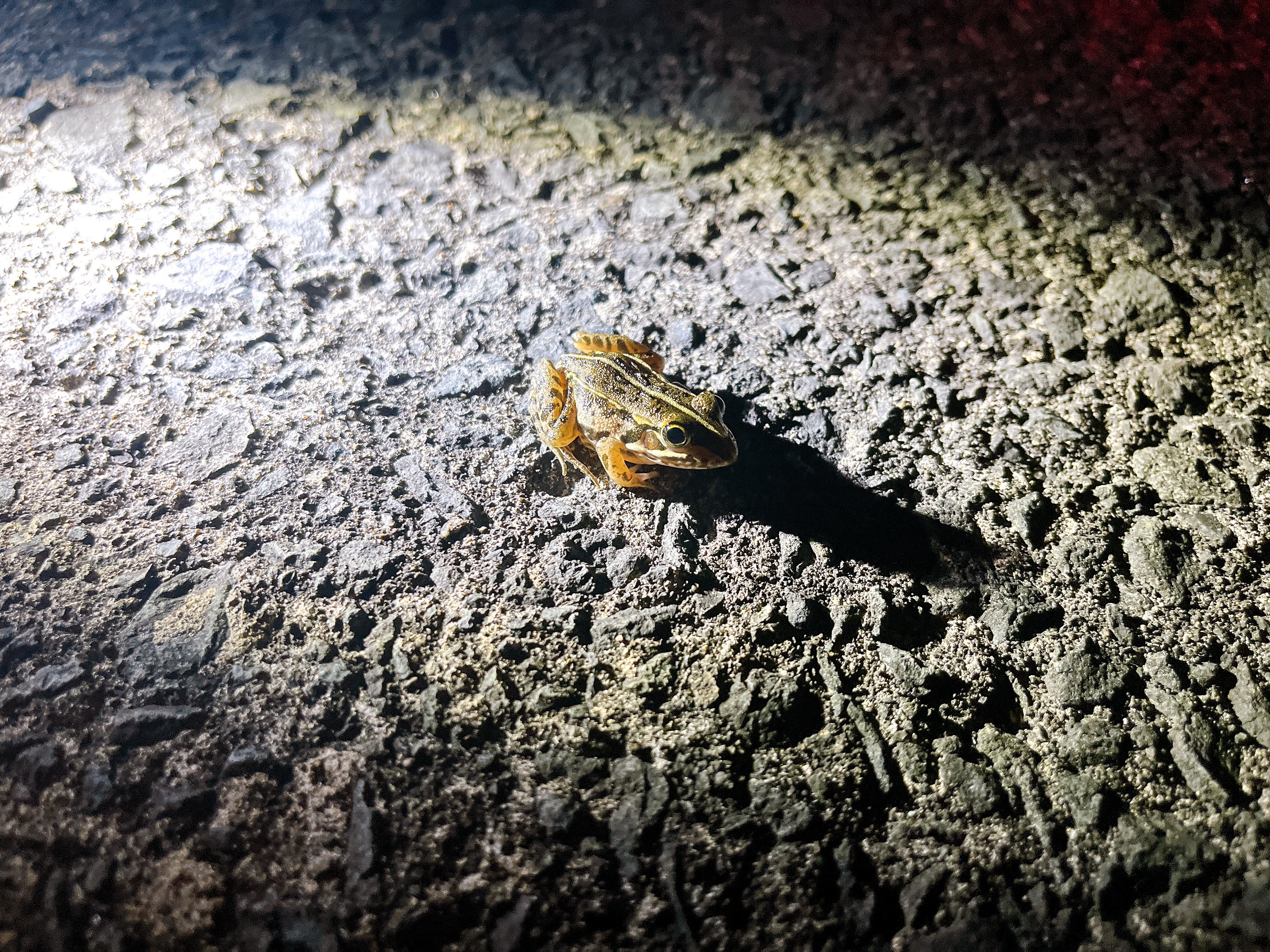 もう最近は寒すぎて減りましたが、先々週くらいまで夜散歩をしていると大量にいるこのトノサマガエル。