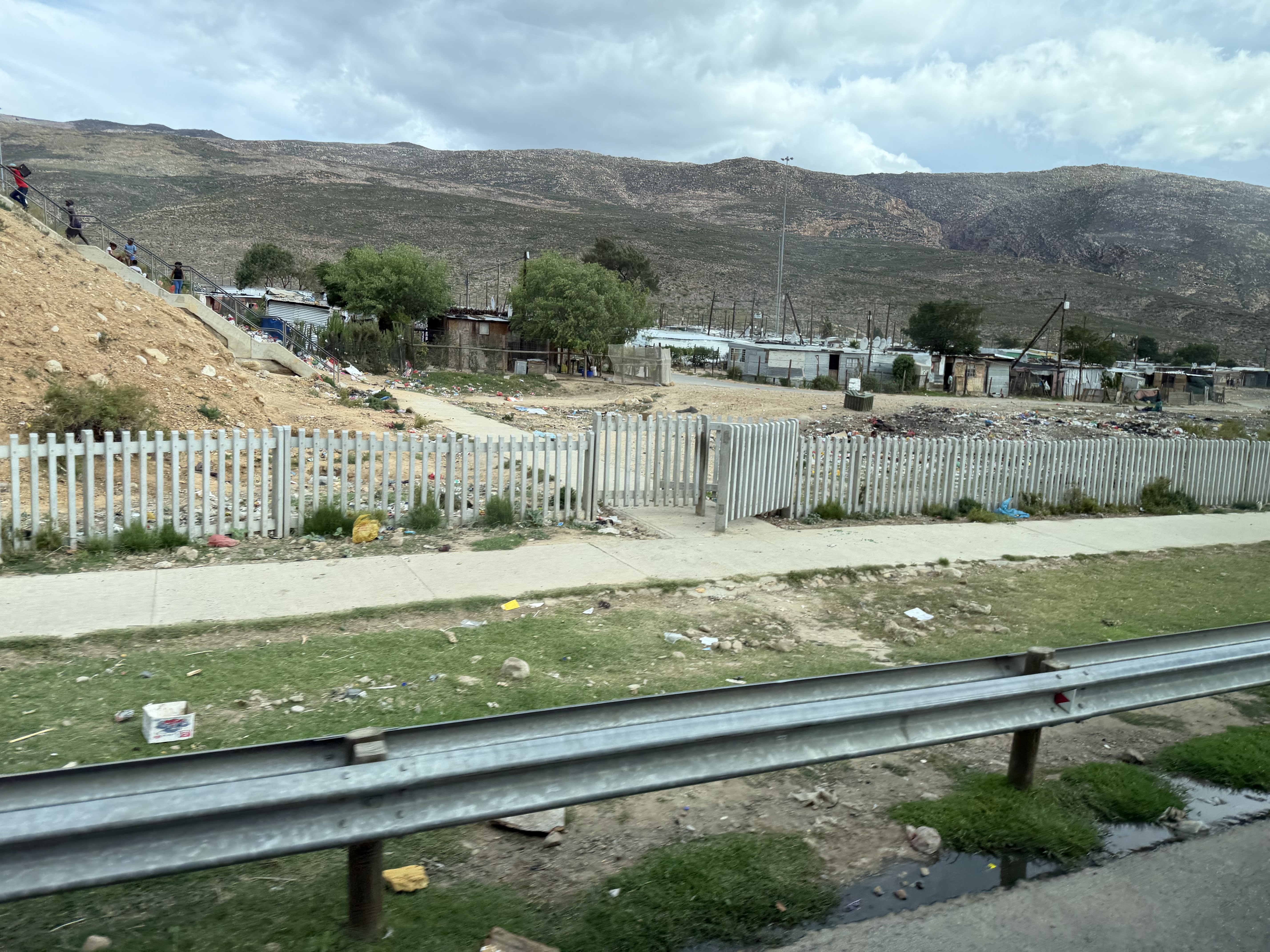 ケープタウンの住宅街と全く違う雰囲気で、広く掘られた穴にその街のゴミを捨てているような状況でした。