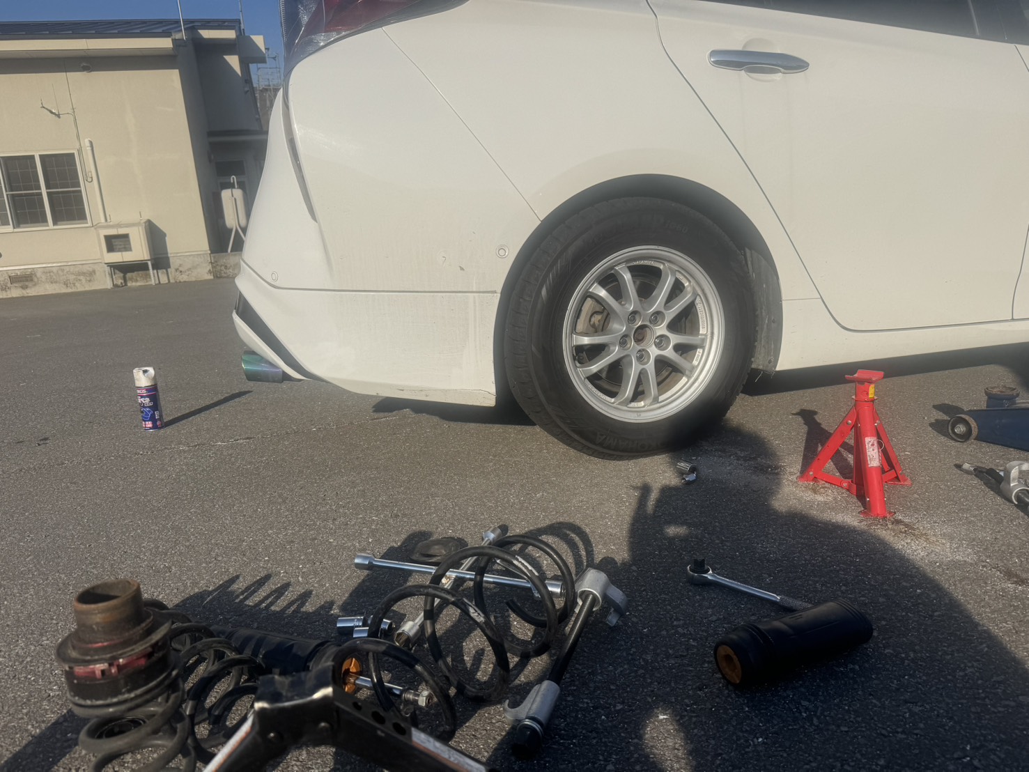 自分の車は車高を下げていたこともあり、それも純正に戻す作業も追加でやりました笑