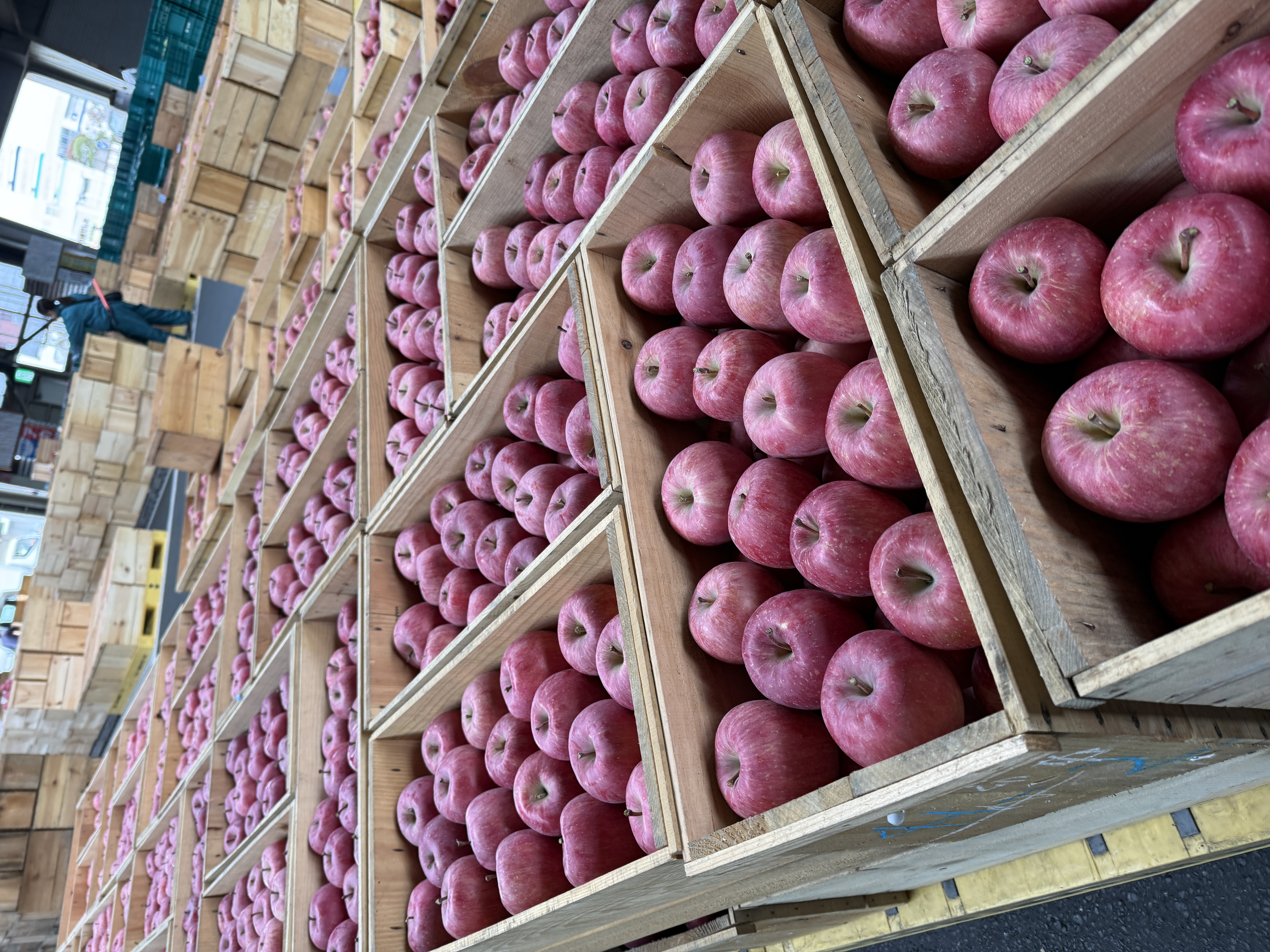 市場はリンゴを置く場所によって金額が変わるんですが、案内された場所に置くのが暗黙のルール…
