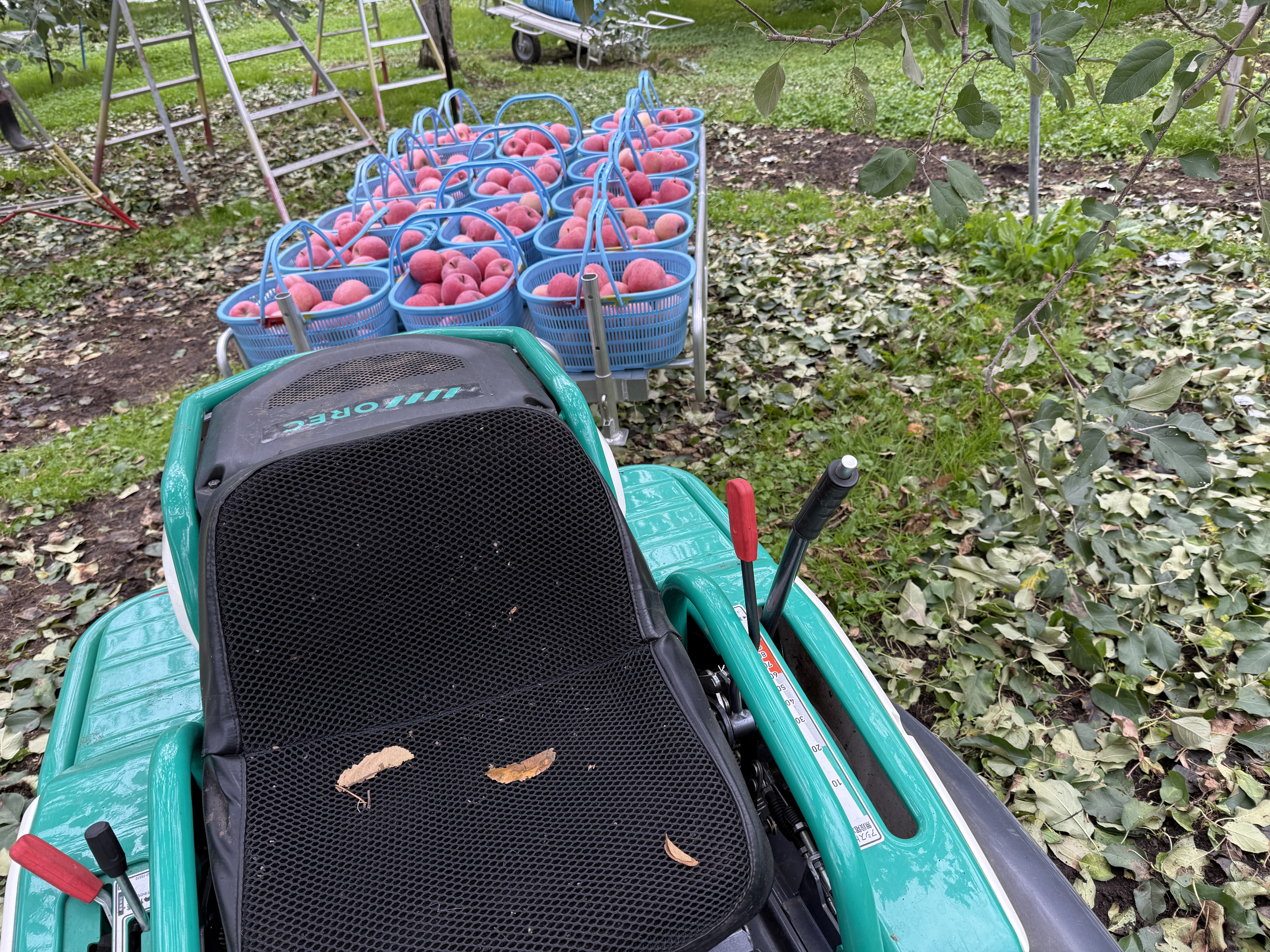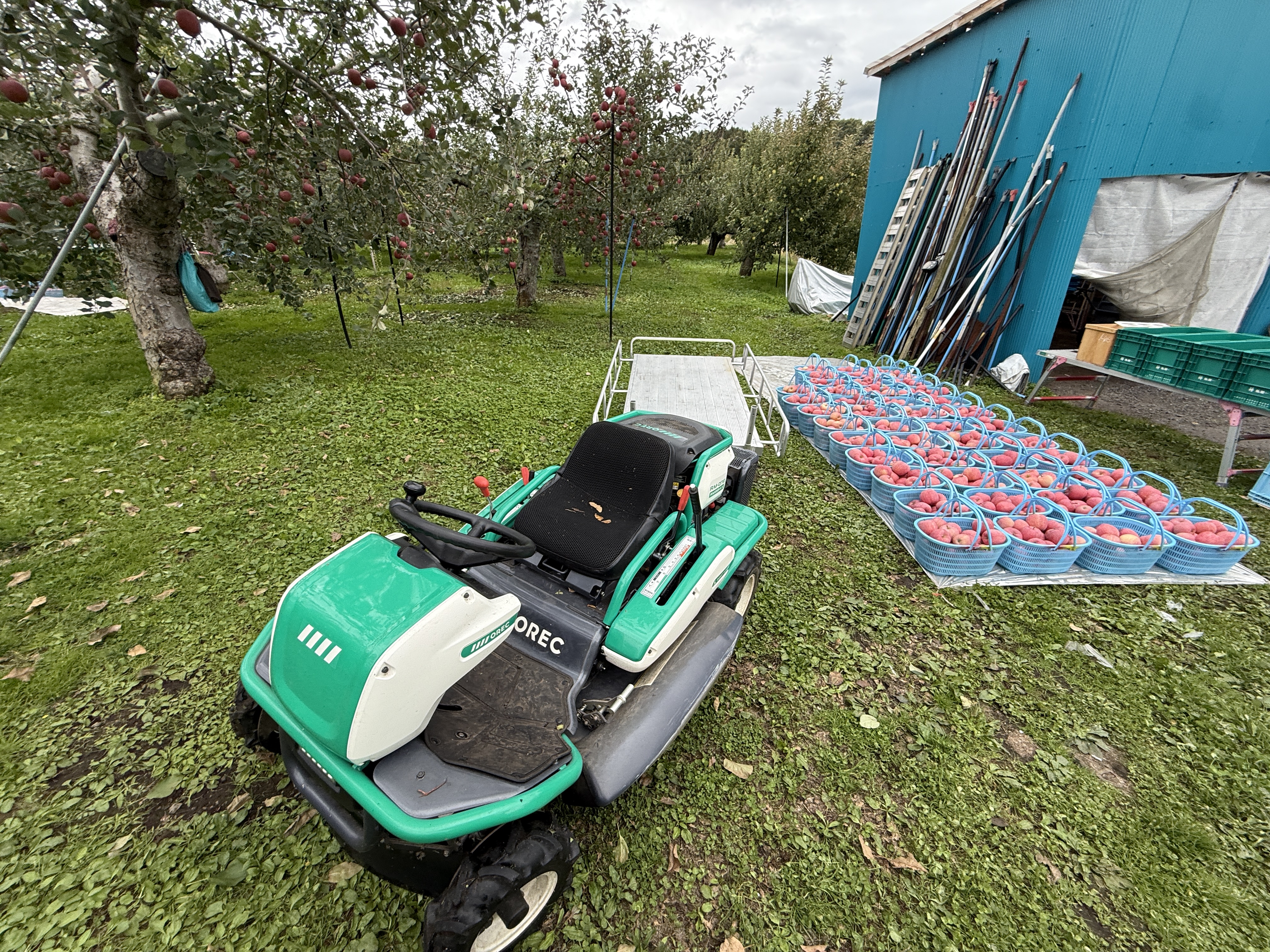 というわけで、今回から収穫したリンゴを選別するところまでリアカーとトレーラーもフル稼働に!