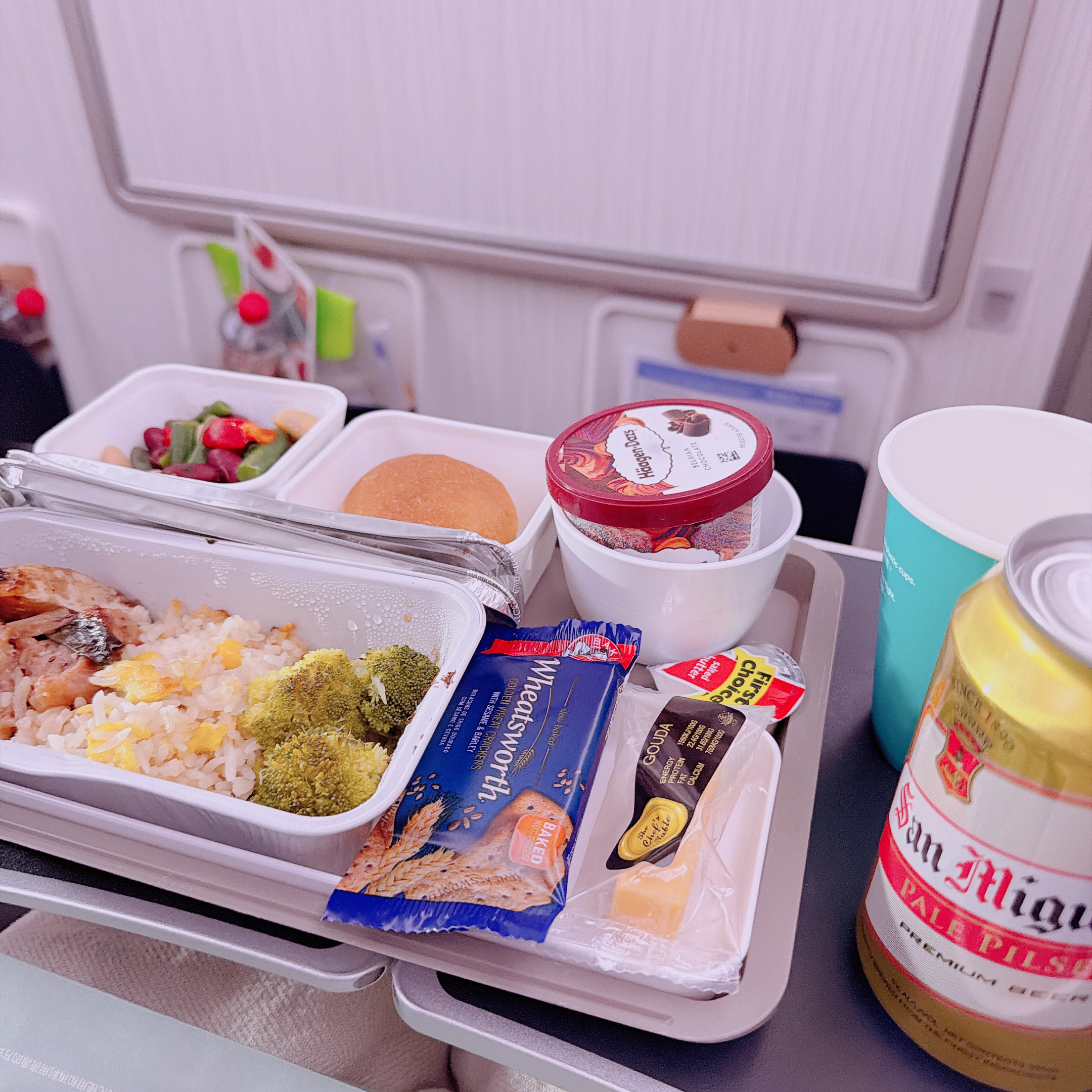 移動が長いので、南アフリカから日本に来るまで2~3食出てきてお腹ぱんぱんでしたが、お酒も飲み放題なのできちんとビールを頂きました。